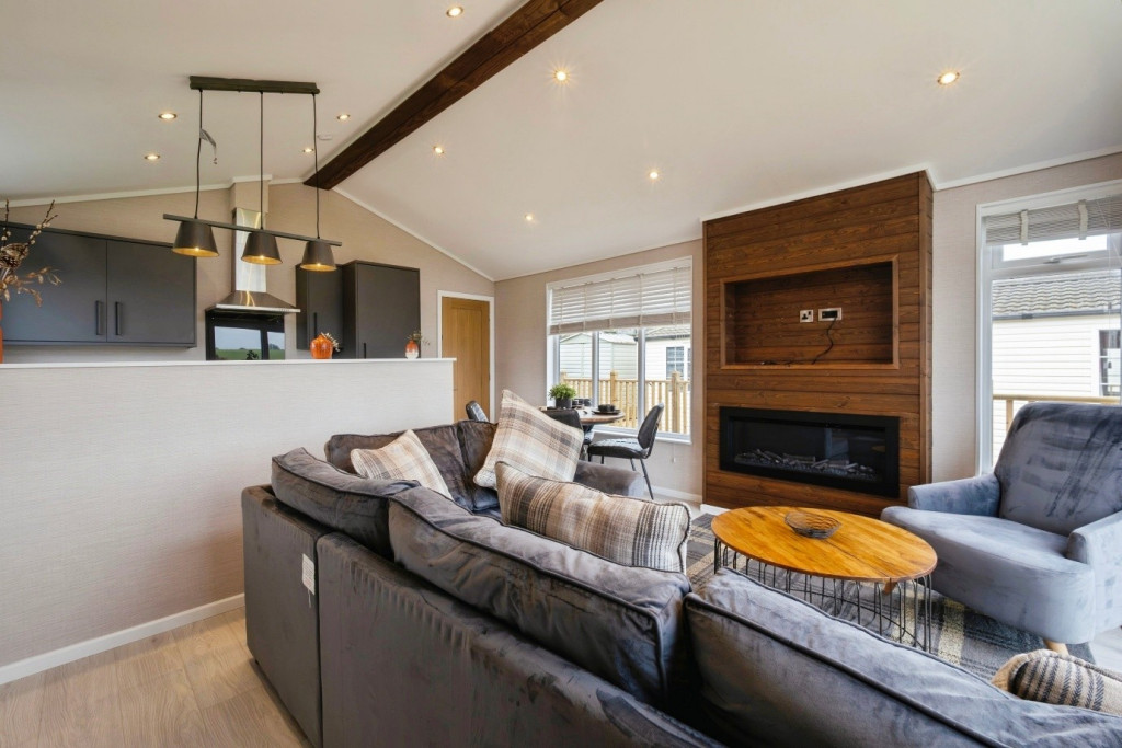 The Quindi boasts a modern, stylish interior, meticulously furnished to a high specification. Enjoy breath-taking countryside views from the elevated position, enhanced by wide windows that flood the lodge with natural light. Wake up to stunning vistas and relax in the evening, enveloped in comfort and elegance.